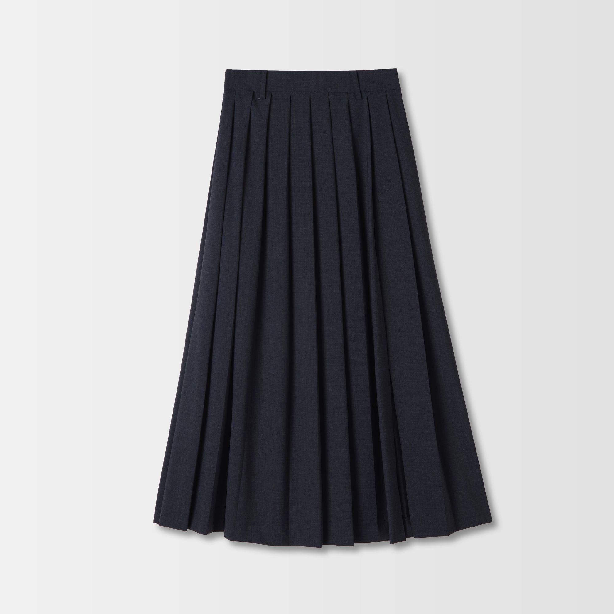 Questa maxi gonna plissettata svasata è disponibile in nero e grigio antracite, realizzata in un tessuto misto lana leggero e antiprurito. Presenta una silhouette svasata e una cintura definita.