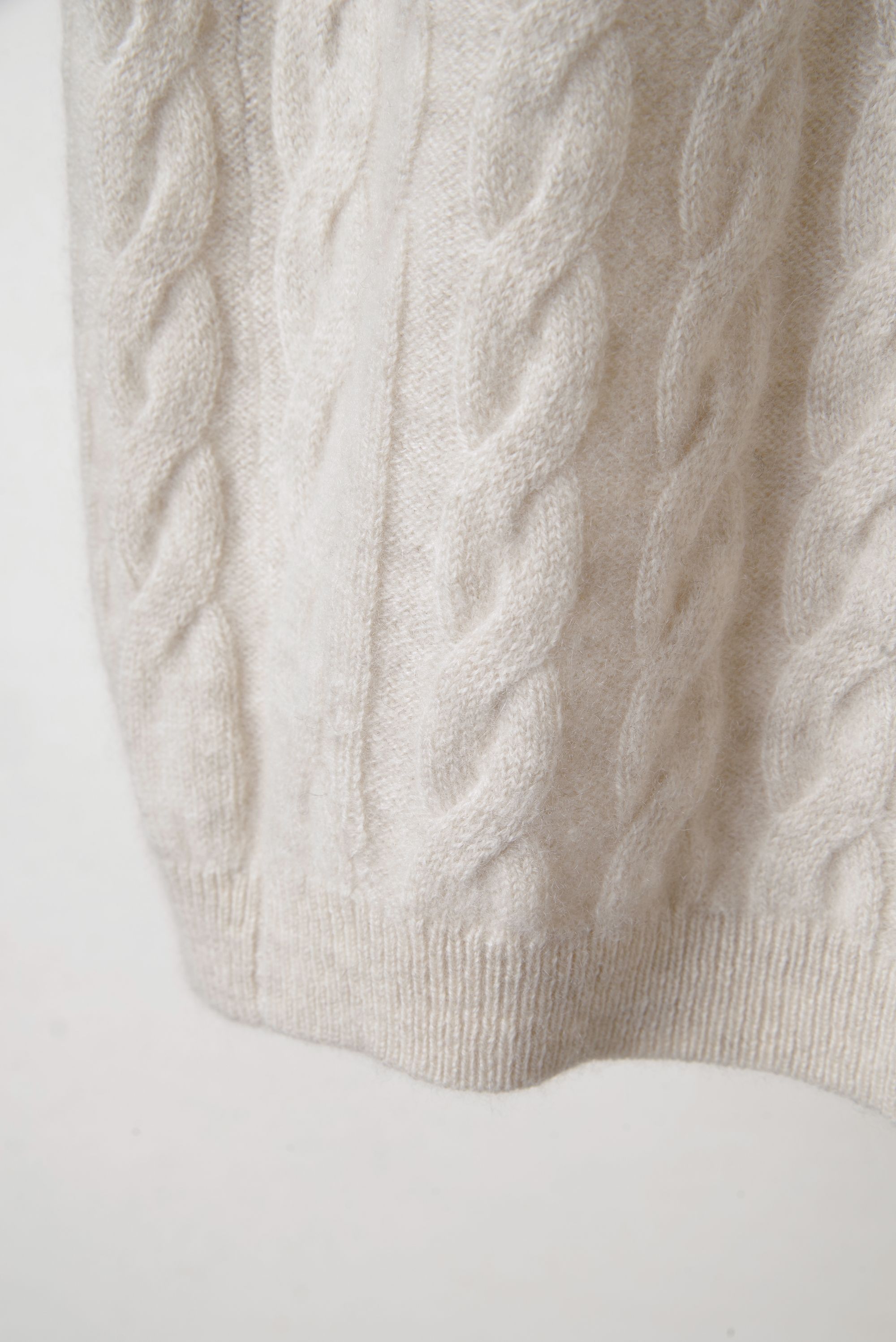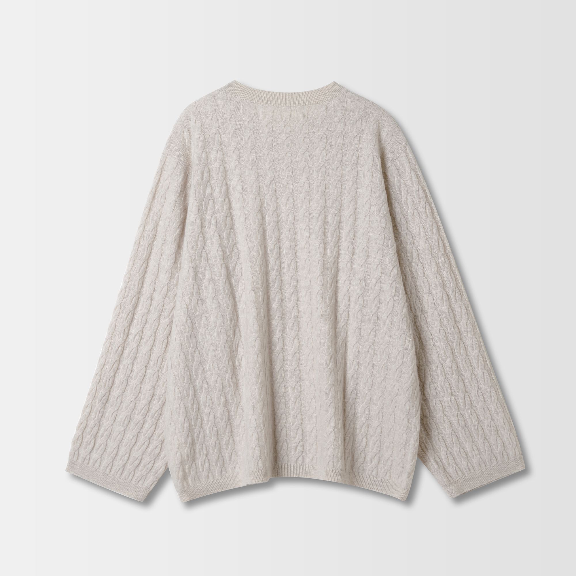 Questo maglione lavorato a maglia a trecce è realizzato con il più morbido misto cashmere e lana, offrendo una sensazione liscia e senza prurito sulla pelle. Con una vestibilità oversize ampia e rilassata, spalle scese e un orlo curvo per un comfort extra, unisce uno stile senza sforzo a un caldo accogliente. I sottili bordi a coste aggiungono un tocco di struttura sottile.