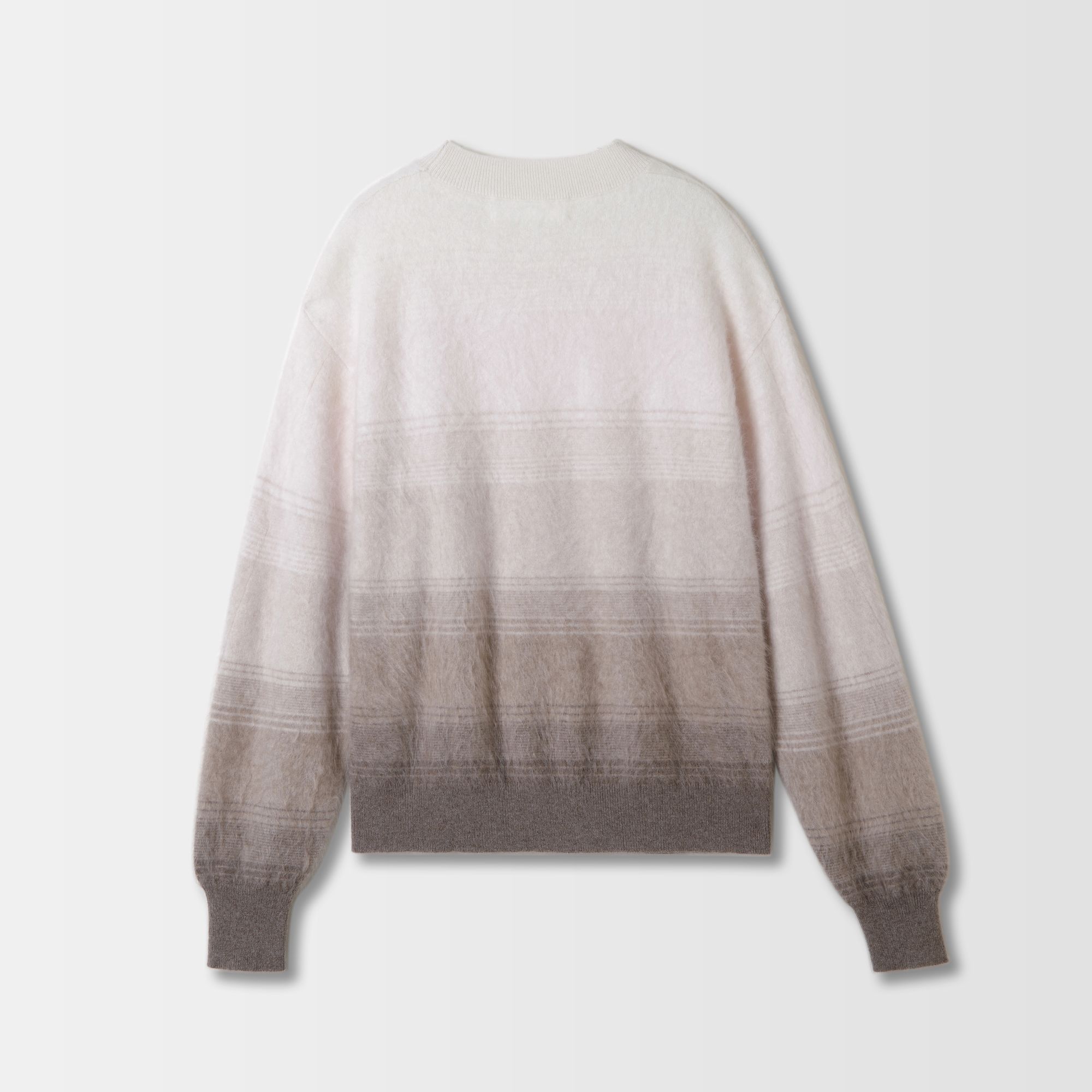 Con uno straordinario design sfumato dal beige al caffè, questo maglione è realizzato in cashmere spazzolato ultra morbido, che offre una finitura liscia ma leggermente strutturata. Ha una silhouette oversize e rilassata che cade morbidamente sul corpo per una vestibilità rilassata. Il maglione presenta spalle scese e dettagli a coste su scollatura, polsini e orlo, unendo comfort a uno stile senza sforzo.