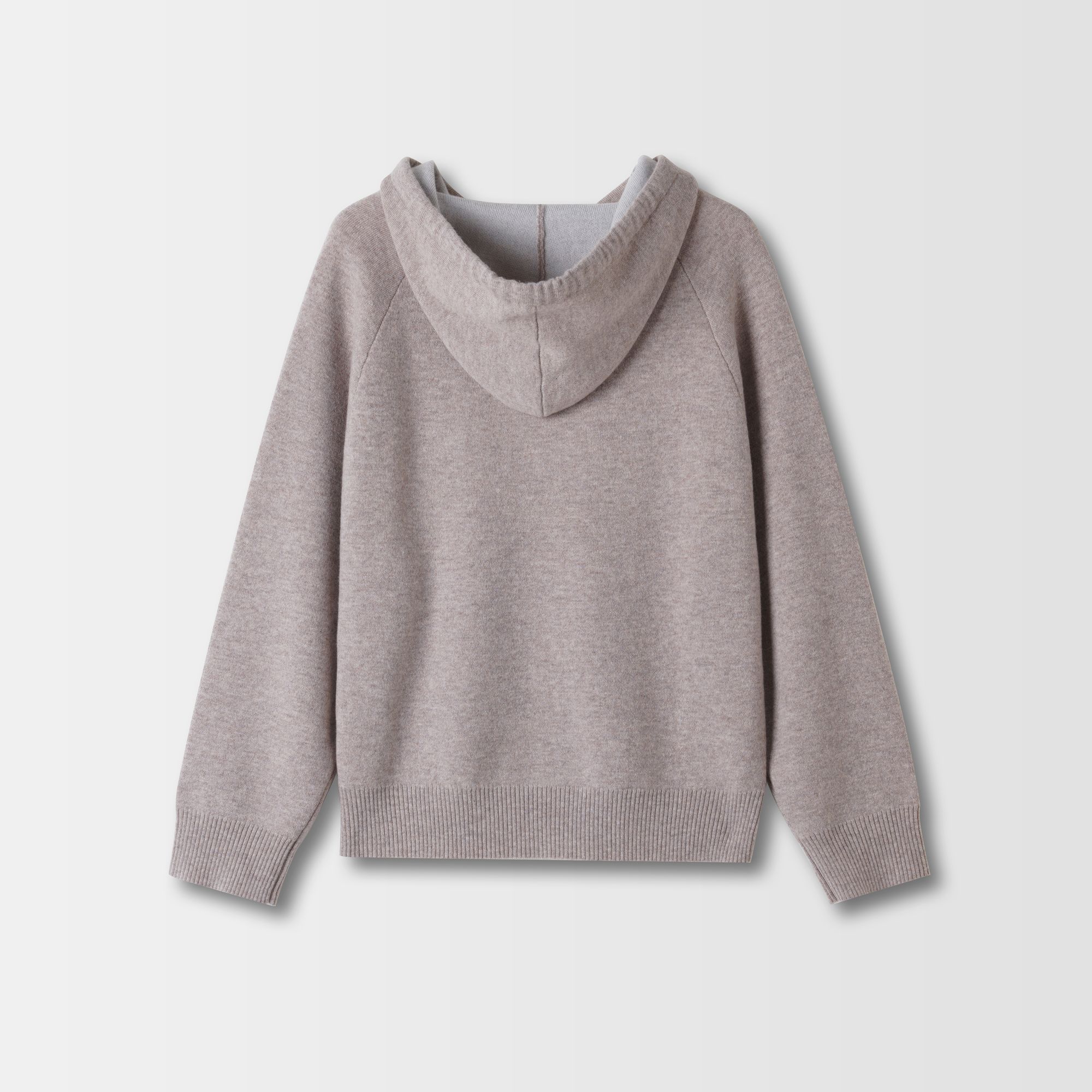 Questa felpa con cappuccio in misto lana e cashmere è morbida e comoda, perfetta per rilassarsi a casa o per creare un look outdoor. La silhouette oversize e la consistenza liscia assicurano il massimo comfort, mentre i polsini a coste e l'orlo dalle linee pulite aggiungono un tocco raffinato. Abbinala ai pantaloni coordinati per un outfit coordinato.
