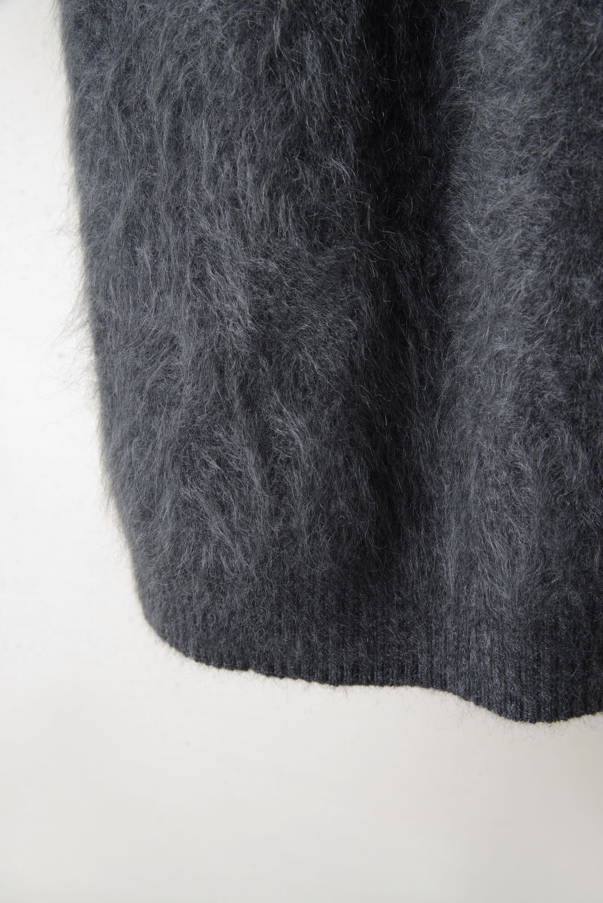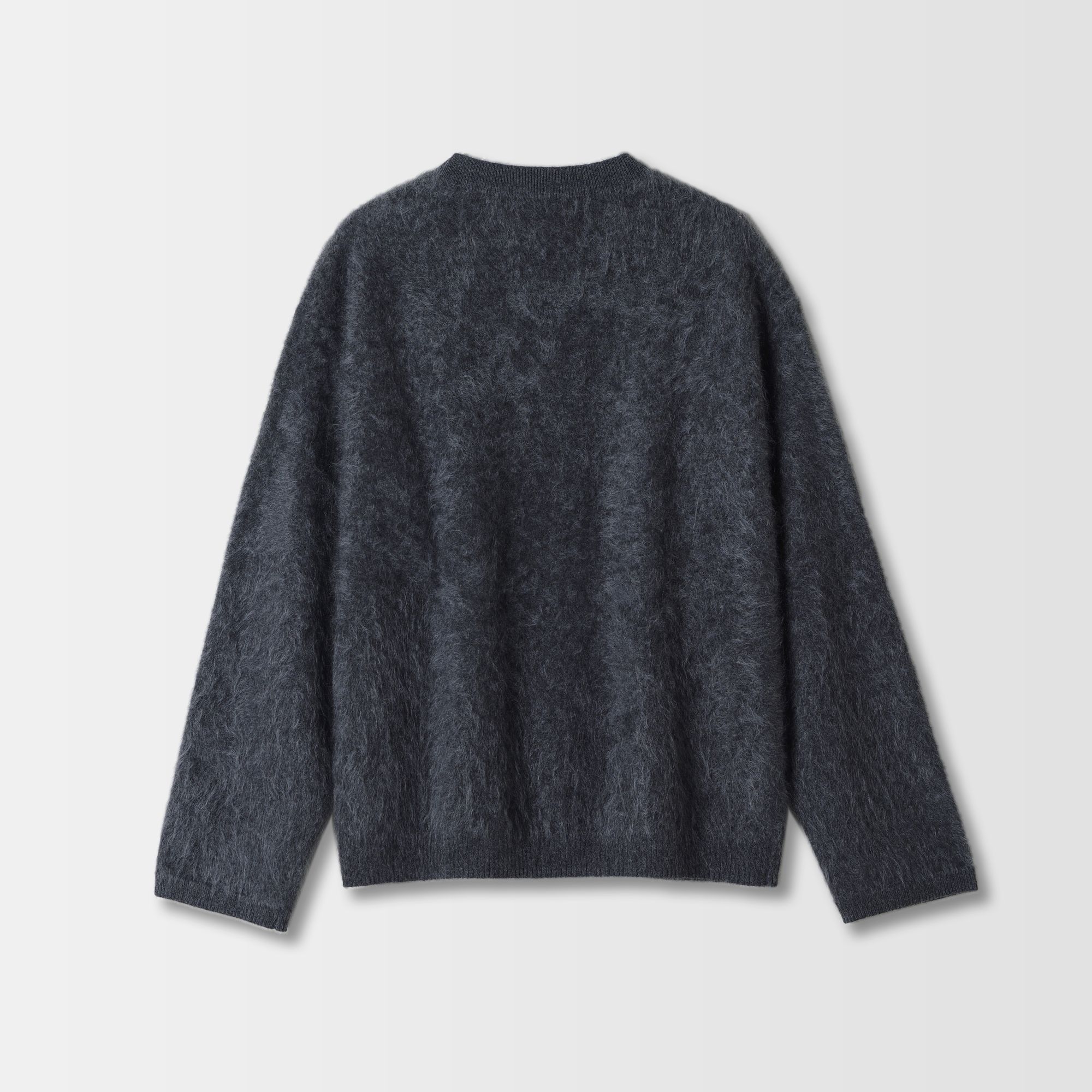 Questo maglione girocollo in 100% cashmere è realizzato in cashmere spazzolato ultra morbido con una delicata finitura pelosa. Progettato con una vestibilità leggermente ampia, presenta un classico scollo a girocollo, spalle scese e dettagli a coste su colletto, polsini e orlo.