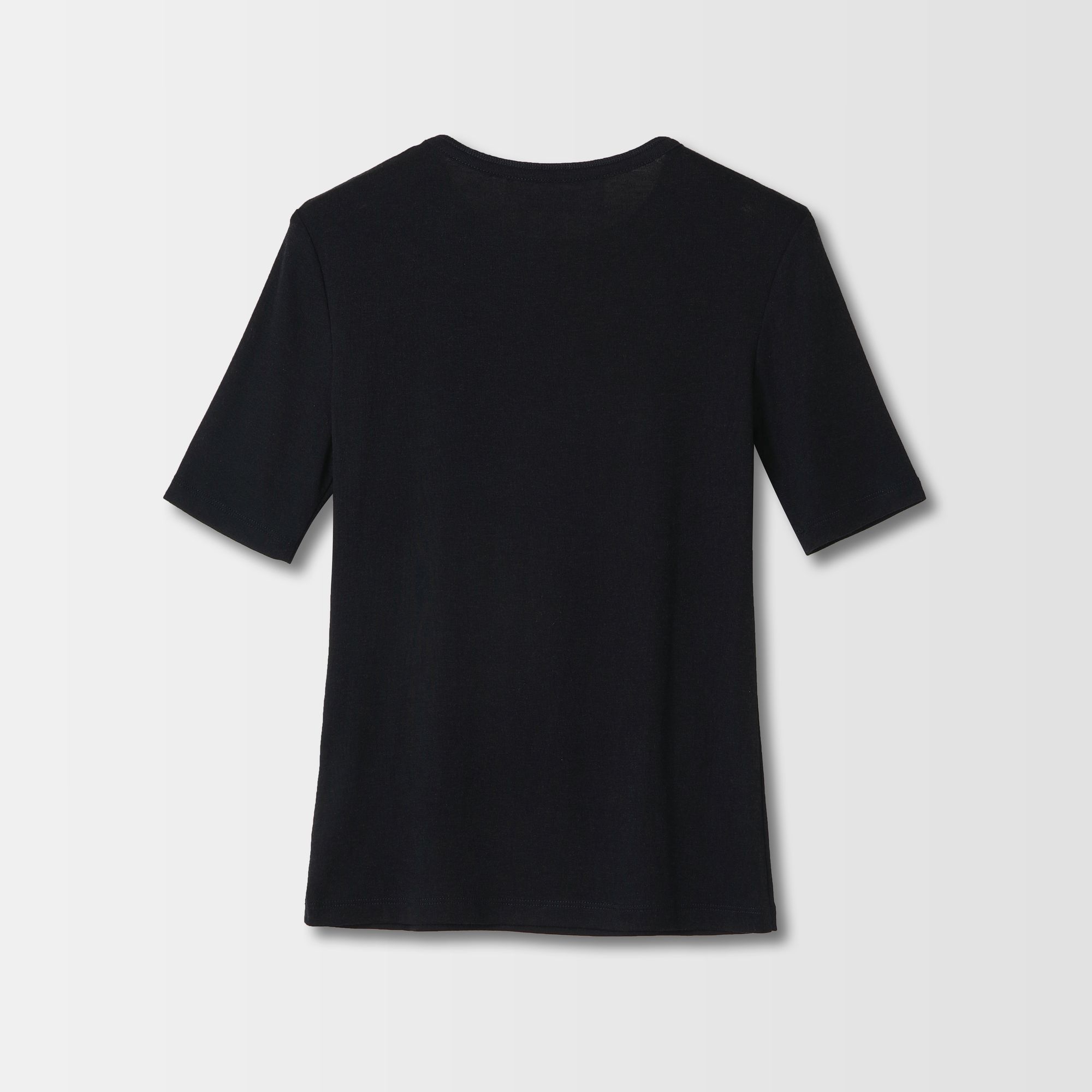 Questa T-shirt, realizzata con un mix di Lenzing Tencel, lana e spandex, è leggera e comoda da indossare. Le maniche, che arrivano appena sopra i gomiti. Caratterizzata da una silhouette aderente e da una classica scollatura rotonda, è disponibile nei colori nero, bianco e caffè.