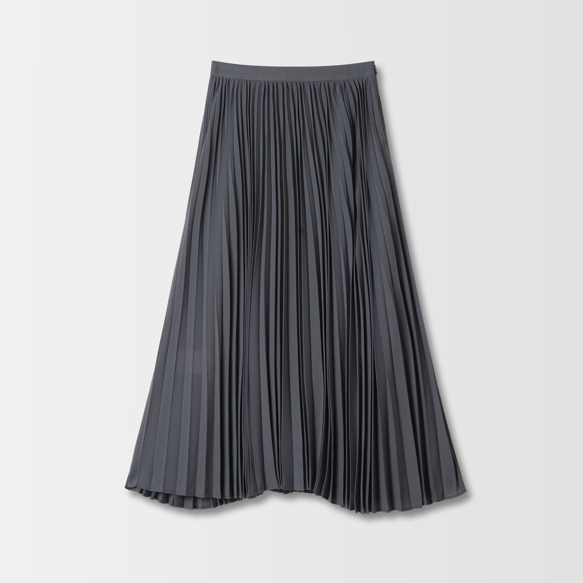 La sua maxi gonna in 100% poliestere presenta un design svasato e plissettato con cerniera laterale, che offre sia struttura che movimento. Il colore grigio aggiunge raffinatezza, mentre il peso sostanziale del tessuto fornisce un drappeggio raffinato ed elegante.