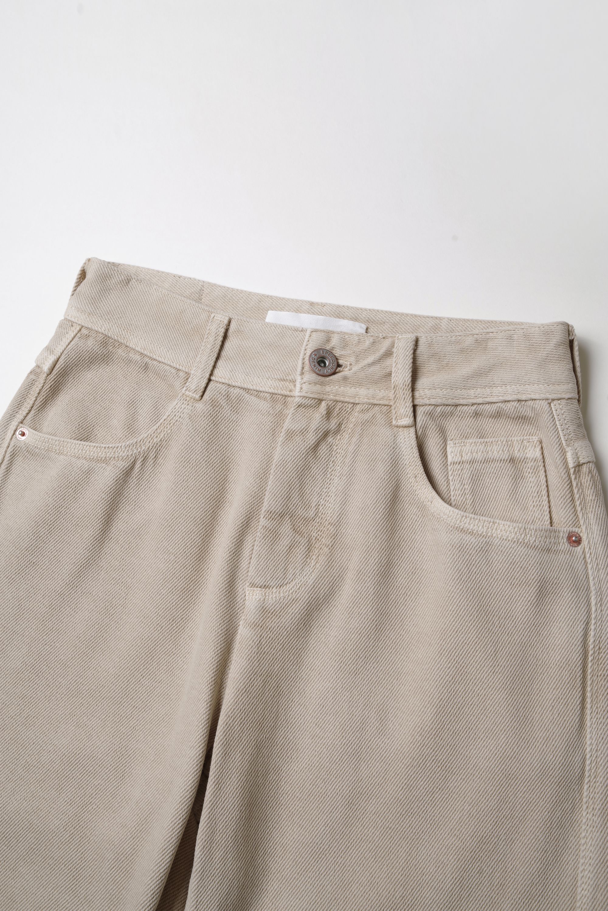 Questi jeans beige in 100% cotone presentano una silhouette a vita media e gamba dritta che arriva fino alle caviglie. Il design classico offre una vestibilità comoda e versatile, perfetta per un abbigliamento casual. Il tessuto assicura resistenza e comfort.