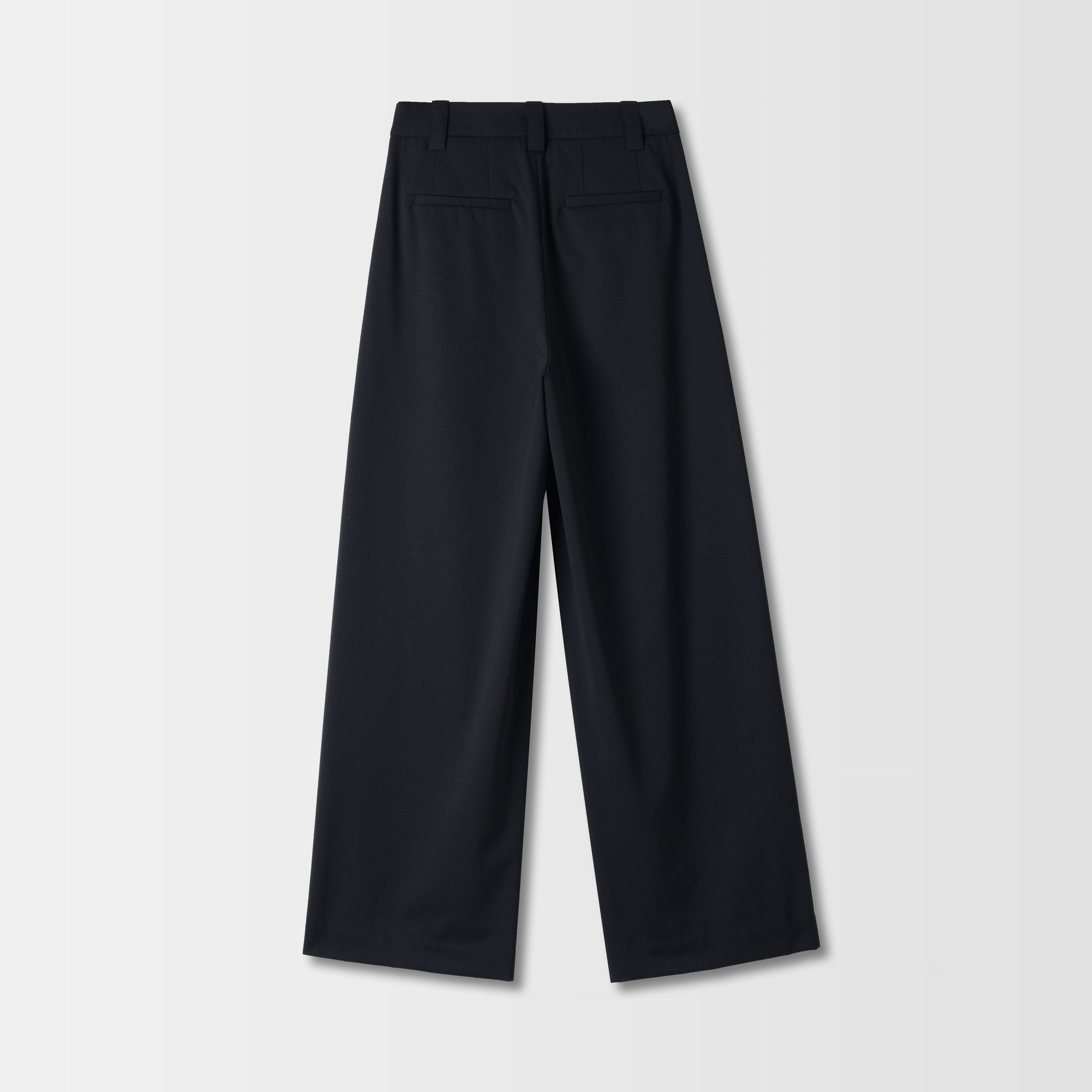 Realizzati in misto lana proveniente da fonti sostenibili, questi pantaloni neri pull-on presentano una comoda vita media e una silhouette dritta e rilassata a gamba larga. La fodera in cotone assicura un comfort aggiuntivo. Progettati con una vestibilità rilassata e un taglio lungo fino al pavimento, includono tasche laterali, tasche posteriori a filetto e chiusura con cerniera, gancio e barra.